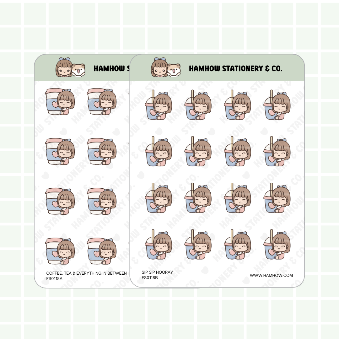 Featuring cute and fun icons of coffee cups and bubble tea, this sticker is perfect for marking your café visits, coffee breaks, or bubble tea hangouts. Whether you're savoring your morning brew or grabbing a refreshing treat, these stickers will add a cozy, playful vibe to your planner.